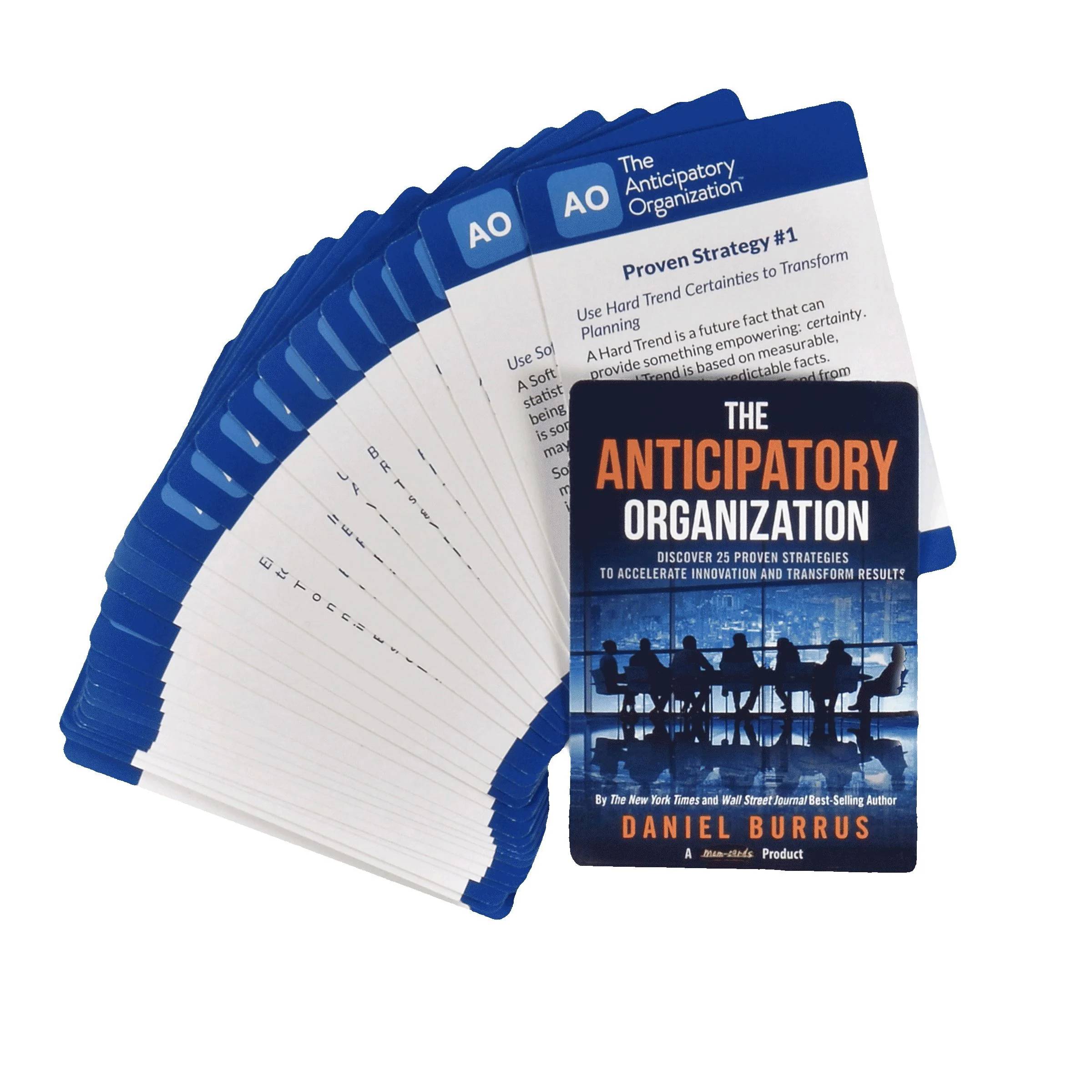 The Anticipatory Organization® Mem Cards by Daniel Burrus pack 25 proven strategies into a pocket-sized deck, helping you spark innovation, solve challenges, and anticipate change before it happens. Perfect for leaders, teams, and innovators on the go.