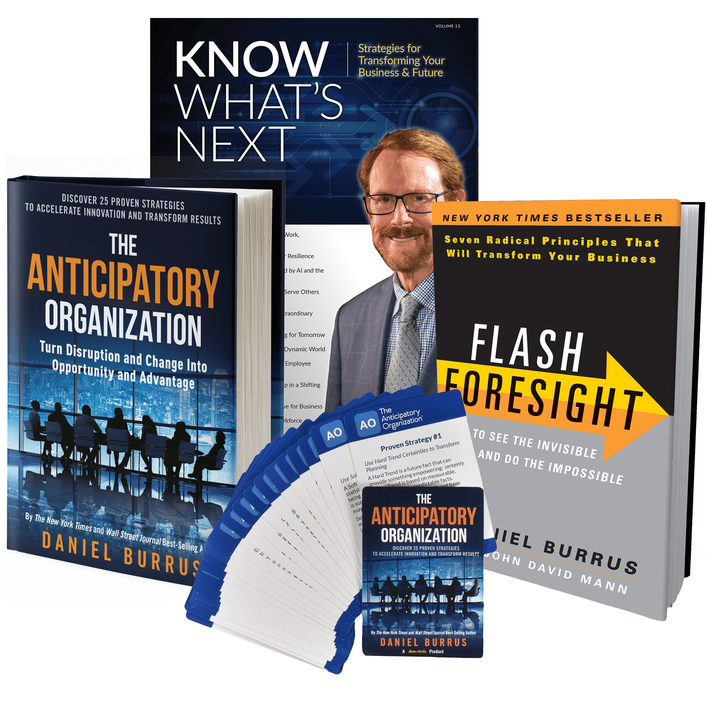 The Transformation Accelerator Package gives you the tools to spot Hard Trends, pre-solve problems, and anticipate customer needs before your competition—with signed books by Daniel Burrus, the latest Know What’s Next magazine, and more.